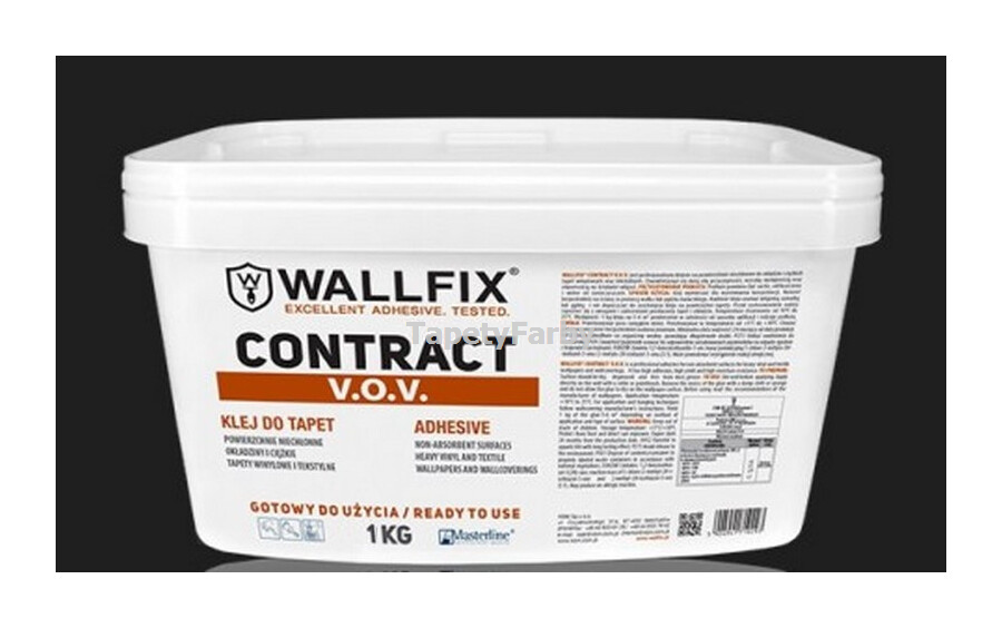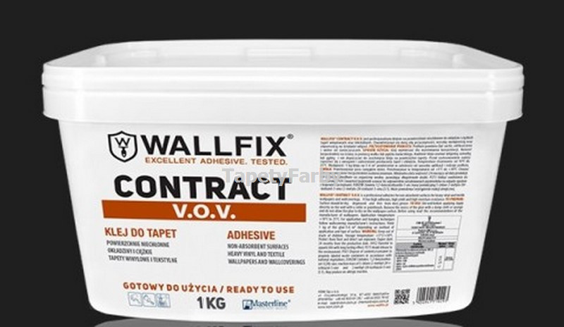 Klej Wallfix Contract V.O.V. to profesjonalny klej na powierzchnie niechłonne do okładzin i ciężkich tapet winylowych oraz tekstylnych. Charakteryzuje sią dużą siłą przyczepności, wysokąwydajnością oraz odpornością na działanie wilgoci.