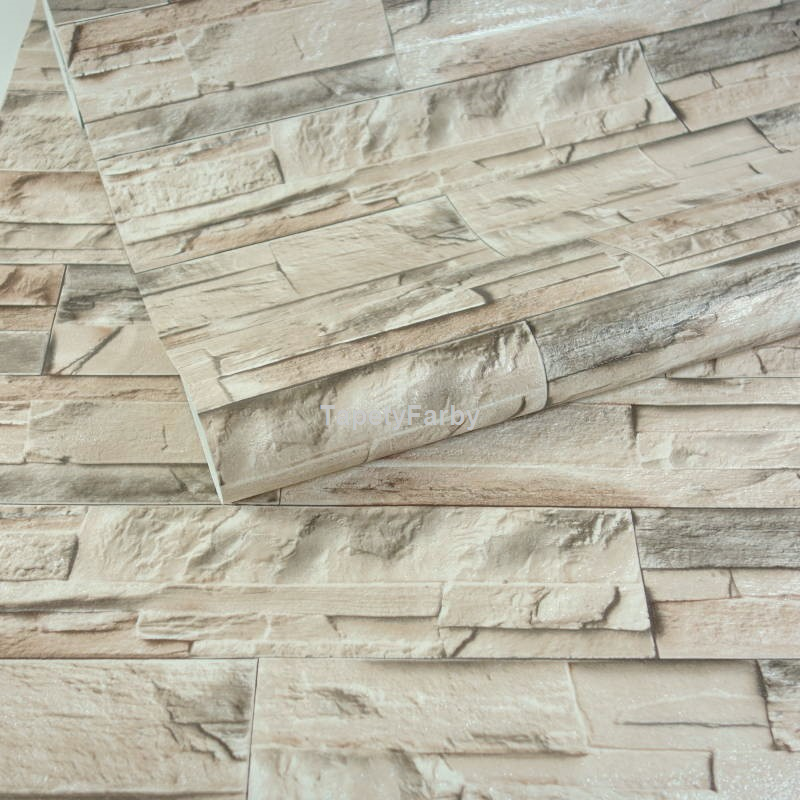 Tapeta ŁUPEK 3D kamień łupany beżowy flizelina do mycia