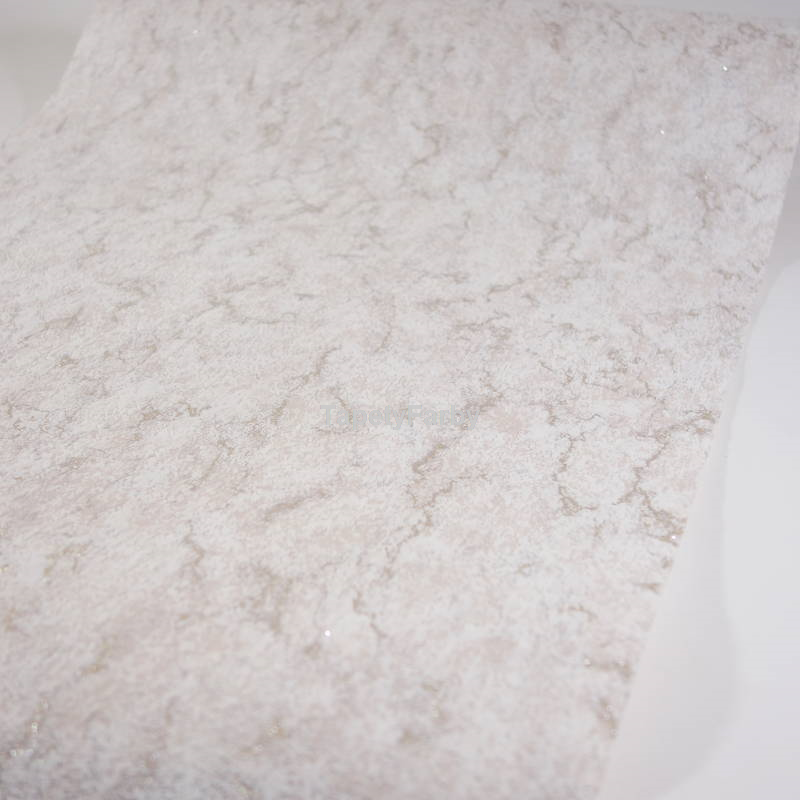 Uniwersalny wzór przypominający tynk nadaje się do każdego rodzaju pomieszczeń. Taka tapeta stanowi idealne tło dla wszystkich obrazów i obrazków, które ewentualnie możemy zawieszać na ścianach. Dobrze będzie się również komponować jako uzupełnienie tapet o bardzo zdecydowanym wzorze. Do komplety posiadamy tapetę ze wzorem ornamentu. Delikatny biało-beżowo-brązowy kolor, rozświetlony żyłkami srebrnego brokatu na pewno się Państwu szybko nie znudzi.