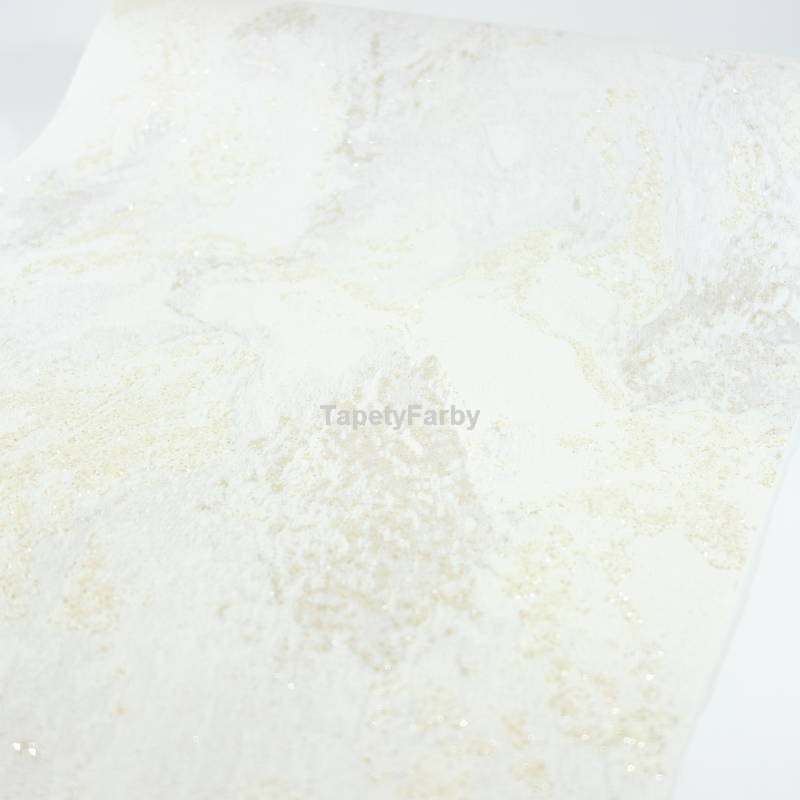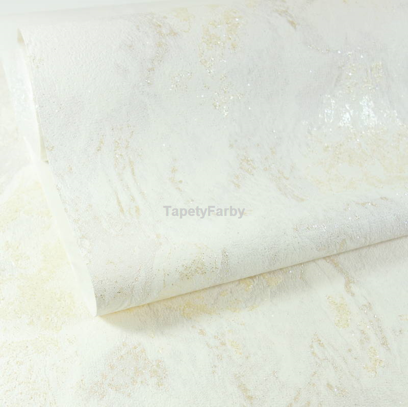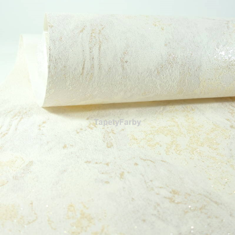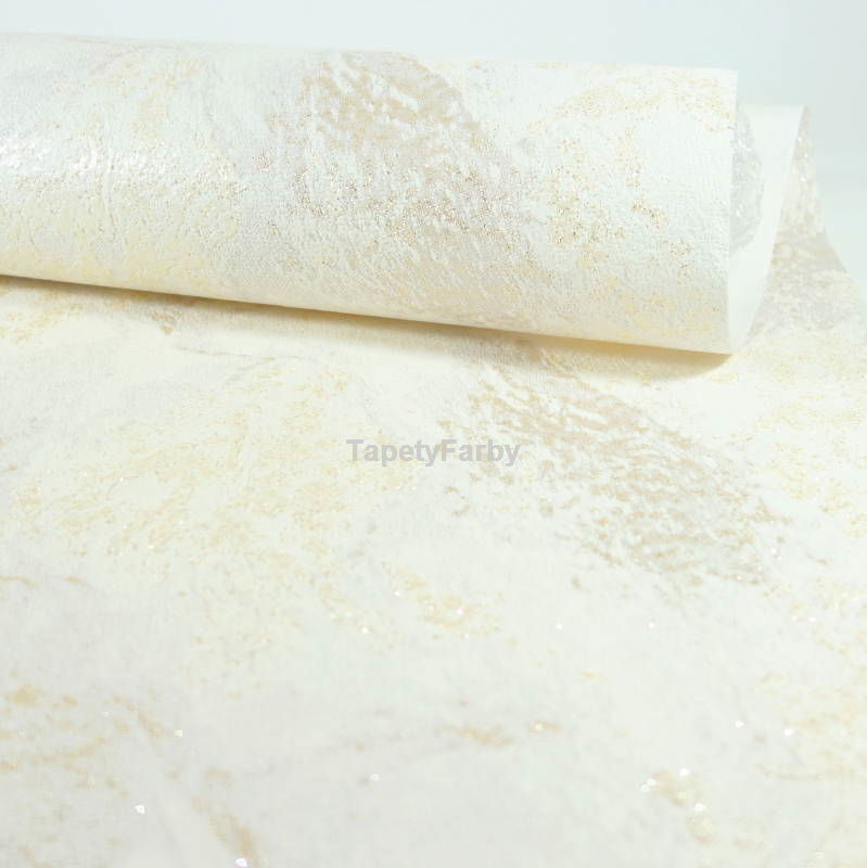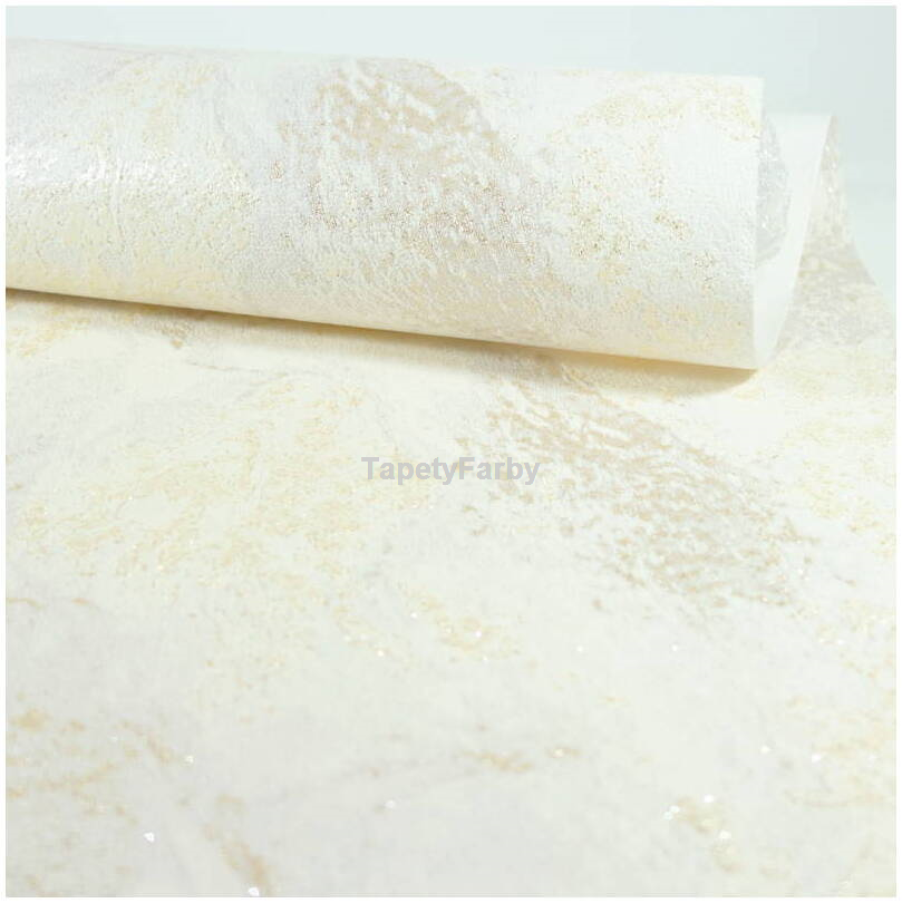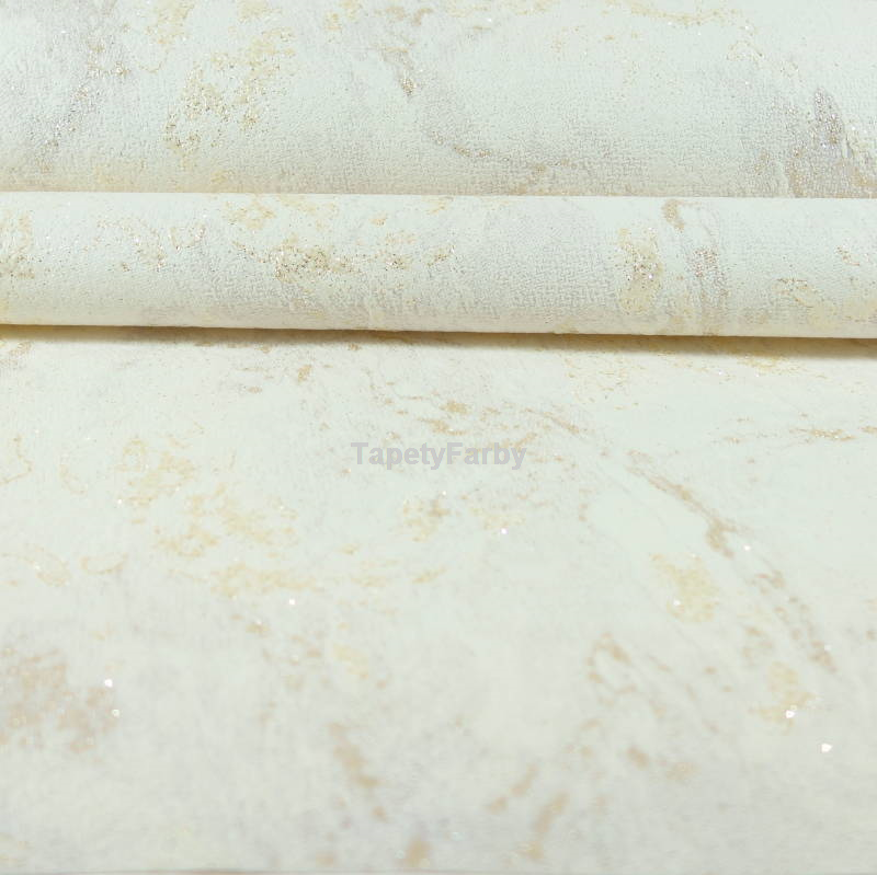 Tapeta jak KAMIEŃ marmur kremowy złoty brokat Flizelina
